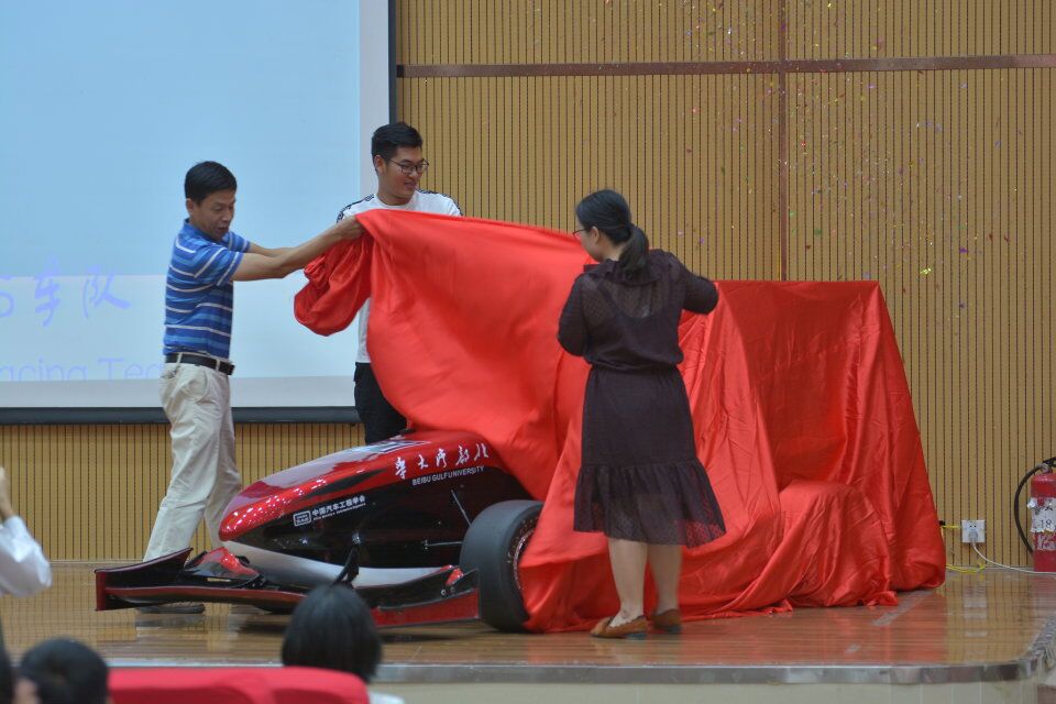 9月24日下午,我校FLYERS车队在4号教学楼举行新车发布会暨出征仪式。机械与船舶海洋工程学院院长邱成军出席仪式并讲话。邱成军院长表示,赛车的亮相不仅仅是在校大学生动手实践的成果,更重要的是展现了北部湾大学转变为应用型大学的办学特色。他希望车队在以后的比赛中,赛出水平,赛出风格,赛出湾大学子的风采。2019赛季车队技术总监黄志福向大家介绍全新的空气动力套件、抽真空工艺等技术亮点。随后,领导们为新车进行揭...