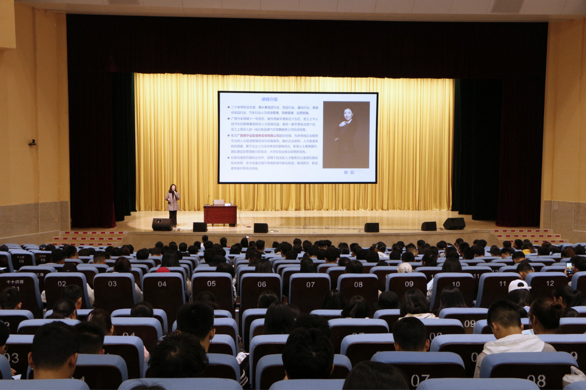 12月12日.为助力我校学子了解就业现状,提高就业意识,增强求职及适应能力,招生就业处特邀广西南宁远哲信息咨询有限公司副总经理林欣携手机械与船舶海洋工程学院在学校礼堂举办“大学生提前职业化”讲座。近千名来自各专业的学生参加了讲座。会上,林欣副总经理从2019年近三个季度人才需求分析入手,用数字说明需求减少供给增多的就业现状。随之通过具体案例分析,一一向参会学生详细剖析讲解责任、目标、客户、沟通、协作、学...