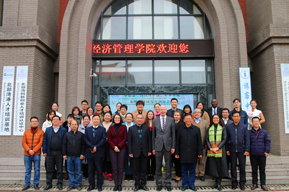 12月10日,中德泰三国区域经济、对外贸易和物流协同发展国际会议在我校经济管理学院隆重举行。我校副校长唐高华与德国梅泽堡应用技术大学副校长德克·萨克曼(Dirk Sackmann),德国不来梅大学、泰国法政大学商学院及广西大学等中外专家学者一同出席会议。会议由经济管理学院院长朱芳阳主持。会上,唐高华副校长对德国不来梅大学等三所大学的到来表示热烈欢迎,他介绍了北部湾大学的发展历史及物流管理专业的基本情况。与会专...