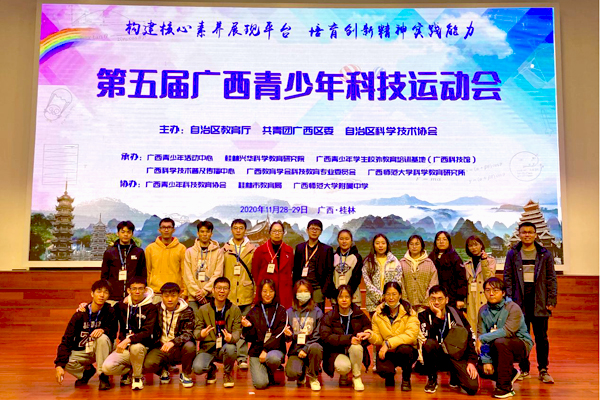 为了进一步提升青少年科技素养,由自治区教育厅、共青团广西区委、自治区科学技术协会共同主办的第五届广西青少年科技运动会于2020年11月28-29日在桂林市广西师范大学附属中学举行。我校获得了一、二、三等奖的好成绩。我校理学院组建了7支队伍参赛,由孙立萍、谢冰、吴兹起三位老师指导,共参加了水火箭、纸桥承重、抛石机攻城、落体缓降、铁丝陀螺、鸡蛋撞地球等六个项目的比赛。最终,黄珍妹获得铁丝陀螺项目一等奖,卢冰峰...
