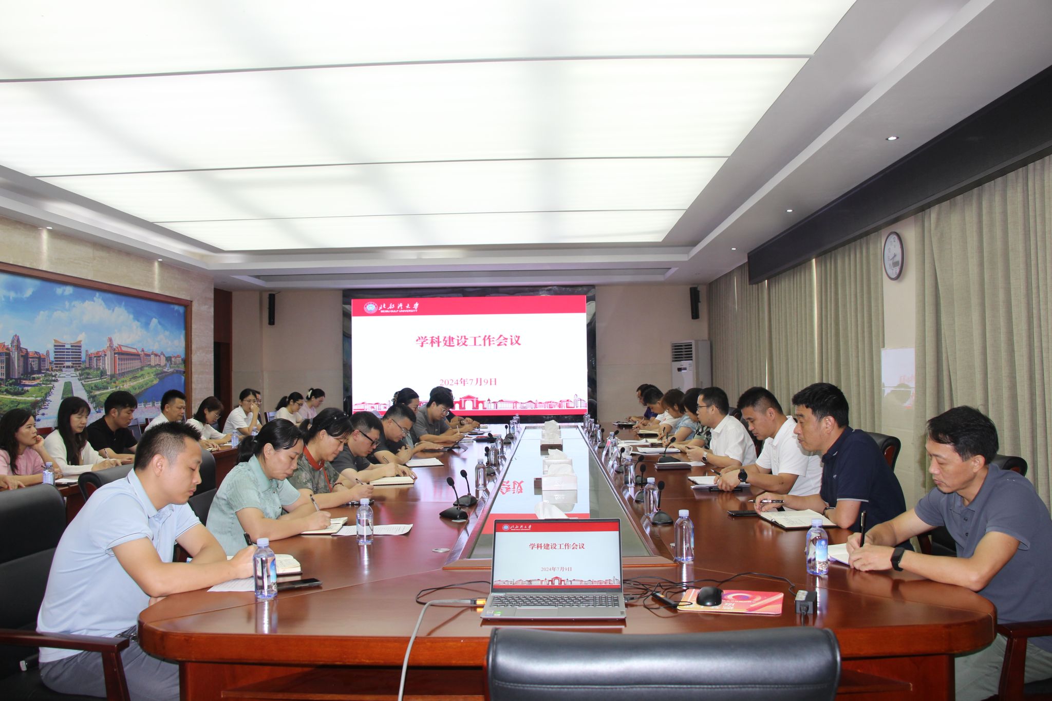7月9日上午,学校在办公楼523会议室召开学科建设工作会议。学校党委常委、副校长陈丹,副校长尹艳镇出席会议,各二级学院负责人及一流学科负责人参加会议。研究生院院长、发展规划处处长刘琼主持。陈丹强调,各学院要制定可量化、可考核的阶段性目标以推动一流学科建设;要对标对表,关注学科前沿,构建学科群,科学谋划一流学科建设方案;要加强多方联动,充分发挥校外资源开展河、海、港等方面的研究,推动一流学科建设有序开展。...