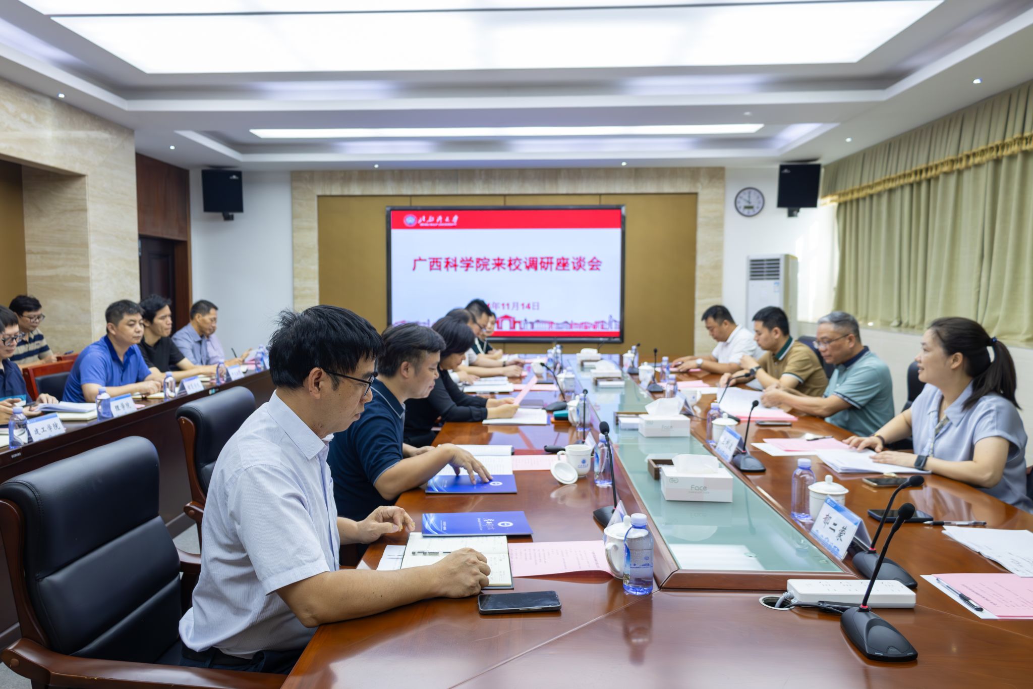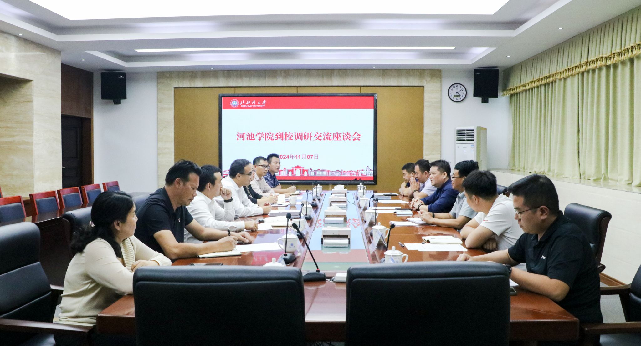 11月7日下午,河池学院党委常委、副校长覃拥灵一行6人到我校调研交流。校党委常委、副校长马秀明出席并主持座谈会。马秀明对覃拥灵一行的来访表示热烈欢迎。他简要介绍了学校建设情况,并从建设规划、后勤管理等方面分享了校区建设的经验做法。覃拥灵对我校基建与后勤工作的成效给予肯定。他表示,将学习湾大校区建设经验,推进河池学院新校区建设工作。双方表示,将以此次座谈为契机,进一步加强沟通与协作,充分发挥各自优势,互鉴互助,...