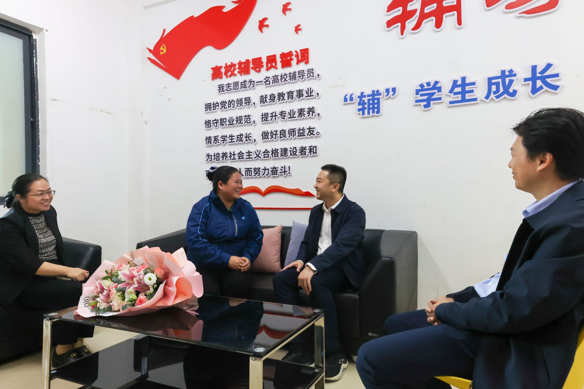 11月21日下午,校党委副书记陈磊率宣传部、学工部(处)、后勤保障处负责人到学生公寓区慰问学生公寓管理员。在西区第四学生公寓的辅导员工作室内,陈磊与学生公寓管理员代表亲切交谈,了解他们的工作和生活情况,感谢他们对学校学生管理服务和学校安全稳定工作所做的贡献。他表示,学生公寓管理员是学校服务育人工作队伍的重要组成部分,学校学工与后勤保障队伍将继续加强与学生公寓管理员的沟通和交流,形成合力,做好管理工作,维护学校安全稳定,...