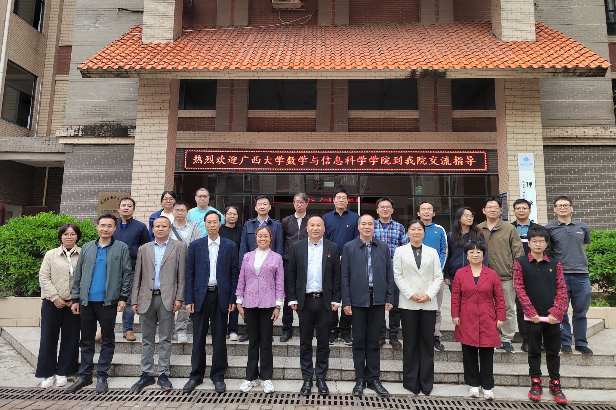 11月26日,广西大学数学与信息科学学院院长郭真华一行12人到我校调研交流。校党委副书记唐高华、理学院领导班子和教师代表参加座谈交流。座谈会围绕学科建设、师资队伍建设、公共课教学、党建工作、学生工作等内容展开交流。唐高华对郭真华院长一行的到来表示热烈欢迎,感谢广西大学在对口支援工作上对我校的大力支持。他表示,我校理学院扎根北部湾地区基础教育行业,致力于数学教育事业的改革和发展,希望双方加强在研究生导师队伍培养、...