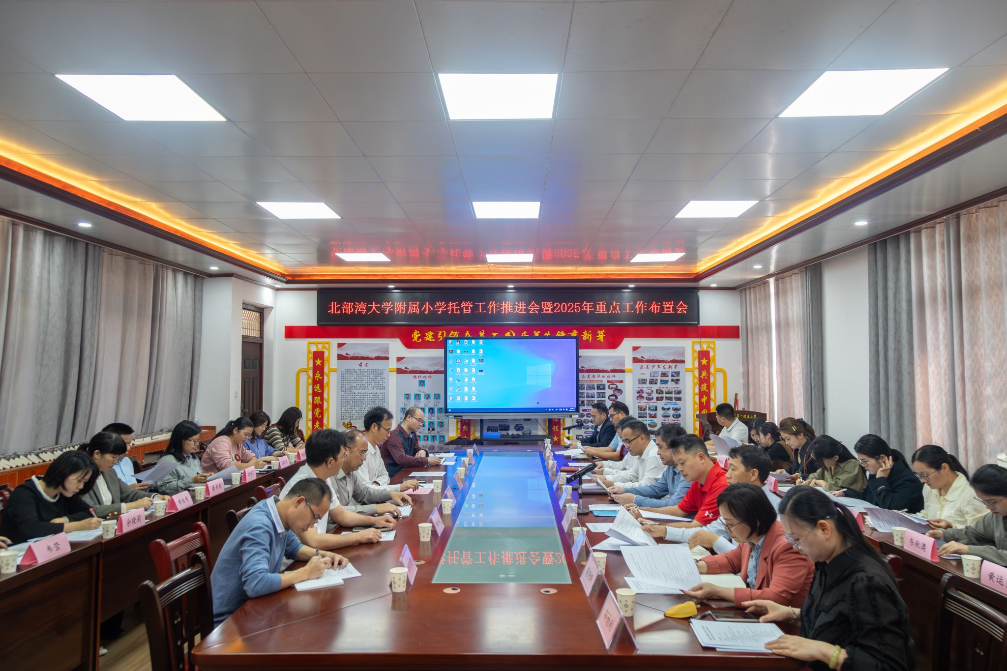 3月27日上午,北部湾大学附属小学托管工作推进会暨2025年重点工作布置会在附属小学三楼会议室召开。校党委常委、副校长马秀明出席会议。会上,教育学院主要负责人详细汇报了北部湾大学附属小学托管工作的进展情况,深入解读了托管协议的具体内容并布置2025年重点工作。北部湾大学附属小学党支部书记、校长梁庆在介绍学校发展情况时指出,目前附小共设有36个教学班,秉承“乐山乐水,至善至美”的办学理念,通过优化课堂评价、创新课后服务等举措,...