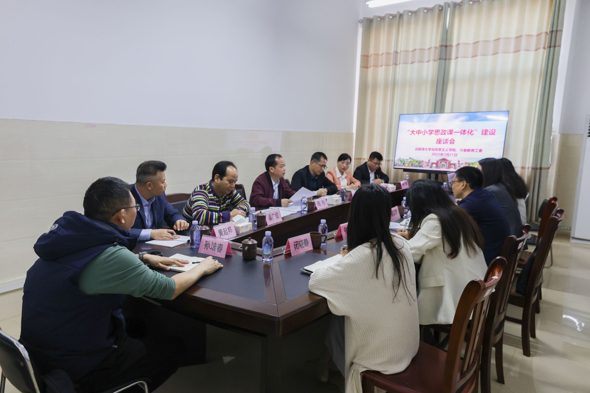 3月21日,“大中小学思政课一体化”建设座谈会在我校马克思主义学院举行。校党委常委、宣传部部长、马克思主义学院党委书记裴以明携学院“大中小学思政课一体化”建设团队成员,钦州市委教育工委专职副书记陆杉率市级思政一体化建设团队,齐聚一堂,围绕“螺旋上升式”课程体系构建、学段衔接机制创新等核心议题展开研讨,共商新时代“大思政课”育人共同体建设路径。裴以明对钦州市委教育工委考察团的到来表示欢迎。他指出,构建纵向贯通的思政育人体系,...