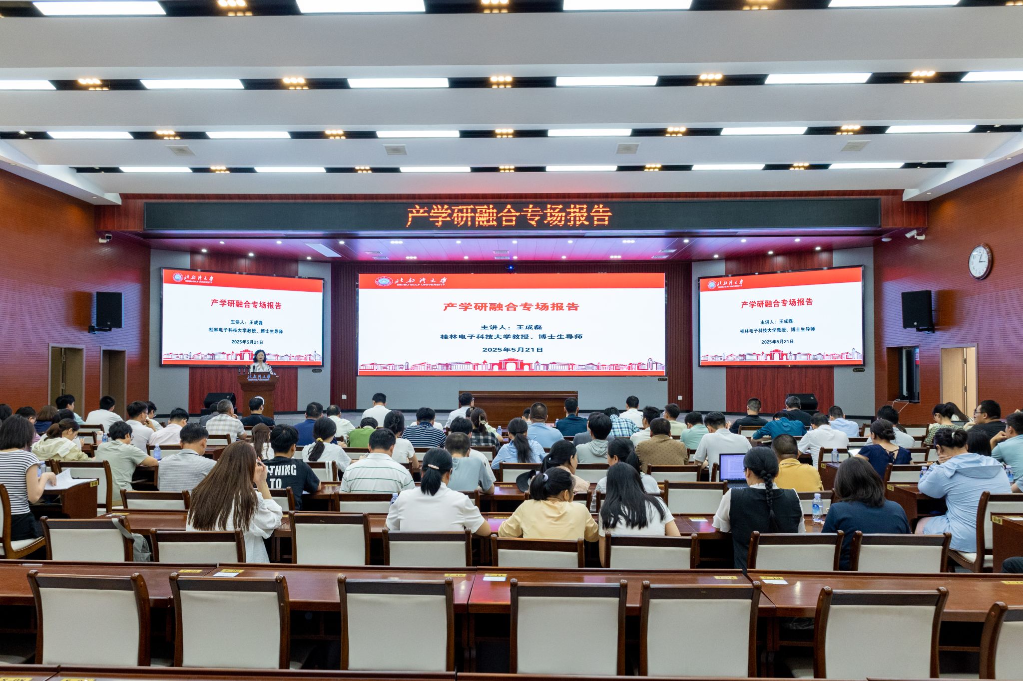 5月21日下午,学校在办公楼一楼报告厅举办产学研融合专题报告会,邀请桂林电子科技大学王成磊教授作题为《产学研深度融合之路:高校教师开展产学研合作的实践与思考》的专题报告。校党委常委、副校长陈丹主持。王成磊教授从高校教师参与产学研合作的重要意义切入,深入剖析产学研合作的现状、发展趋势及现实挑战。结合自身在企业一线的实践经验,他通过典型案例重点探讨校企协同创新的多元路径,包括技术需求精准对接、生产难题联合攻关、...