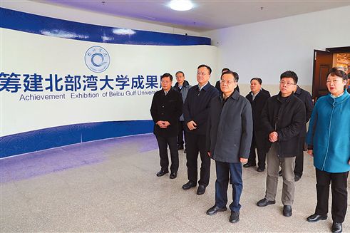1月3日,自治区主席陈武深入北部湾大学调研,听取学校规划建设情况汇报,参观大学筹建成果展,勉励学校乘势而上,加快建设优势突出、海洋特色鲜明的高水平应用型大学。本报记者 梁凯昌/摄本报钦州讯 (记者/董文锋)1月3日,自治区主席陈武深入北部湾大学调研并主持召开北部湾大学建设发展座谈会,强调要认真学习贯彻习近平总书记关于高等教育发展的系列重要论述,按照“建设壮美广西 共圆复兴梦想”的总目标总要求,在新起点上...