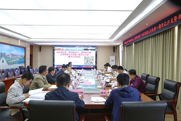 学校党委书记赵君18日上午在办公楼主持召开学校党委中心组第一次集中学习会并讲话。全体中心组成员参加学习会。学习会上,校长韩峻峰围绕学习贯彻2019年“全国两会”精神为主题,从坚定必胜信心,树立高水平应用型大学办学目标;保持战略定力,坚决走好应用型大学办学道路;坚持改革创新,持之以恒继续深化改革发展三个方面做了中心发言。赵君书记在总结发言中强调,要树立“四种思维”,推动“学悟思行”,筑牢建设北部湾大学的思想基础。...