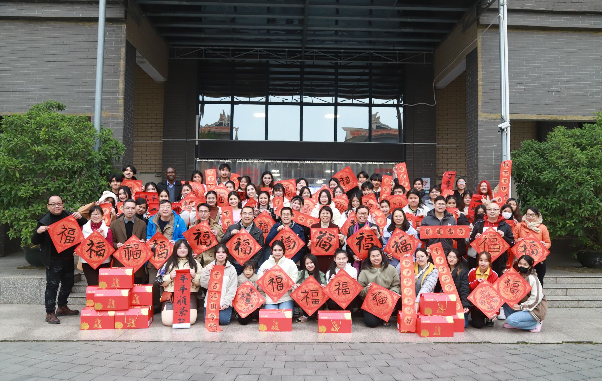 龙年迎新送祝福,吉祥如意庆佳节。2月7日,腊月廿八,校园里挂满火红的灯笼,洋溢着浓浓的年味。学校党委常委、副校长陆衡率队看望慰问寒假留校的中外学生和外籍教师代表,并与70余名中外师生在学校东区教师餐厅一同写福字、写春联、包饺子、吃年夜饭,共同迎接新春佳节的到来。在餐厅里,留校的中外师生围坐在一起,一边聆听老师向大家介绍中国过年的包饺子的民俗对于中国人的特殊意义,一边在教师志愿者的帮助下拌馅料、擀面皮、放馅料、...
