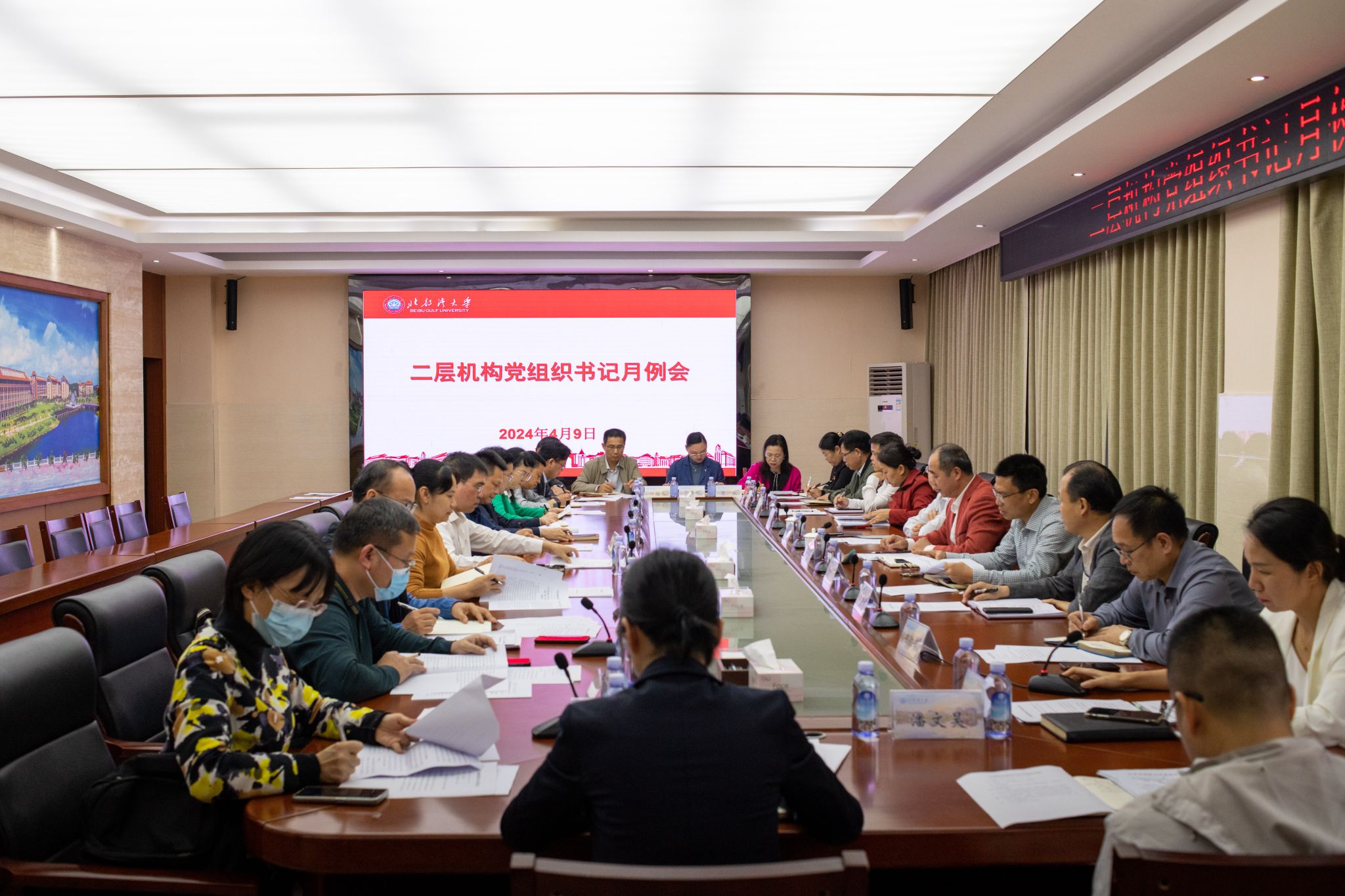4月9日下午,学校在办公楼523会议室召开二层机构党组织书记月例会。校党委书记徐华蕊出席会议并讲话,校党委副书记唐高华主持。党委职能部门主要负责人和各二层机构党组织书记参会。会上,党委组织部通报了基层党建“两随机”调研督查反馈问题整改情况,部署了2024年学校党建“双创”工作方案,并就4月份支部活动指导意见、党建“双创”工作指导建设专题网络培训、申报广西“双带头人”教师党支部书记工作室等近期党建工作任务作了布置。...