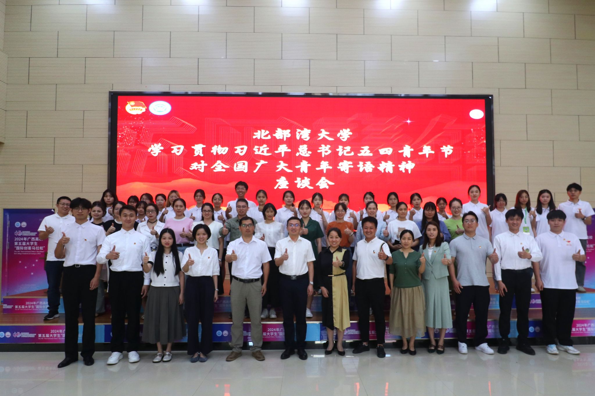 5月7日,北部湾大学青年师生学习贯彻习近平总书记五四青年节对全国广大青年寄语精神座谈会在众创空间301报告厅举行。校党委副书记陈磊出席并讲话。座谈会上,海洋学院教授吴海萍,马克思主义学院专任教师颜文娟,石油与化工学院专职辅导员陈海锋,校团委教师潘爱婷、梁倚天,退役大学生士兵朱衍熹,校学生会主席团成员于军秋,校级青马学员陈俊臻,“挑战杯”中国大学生创业计划竞赛金奖项目负责人罗杰雄等9名青年代表结合自身成长和科技创新、...