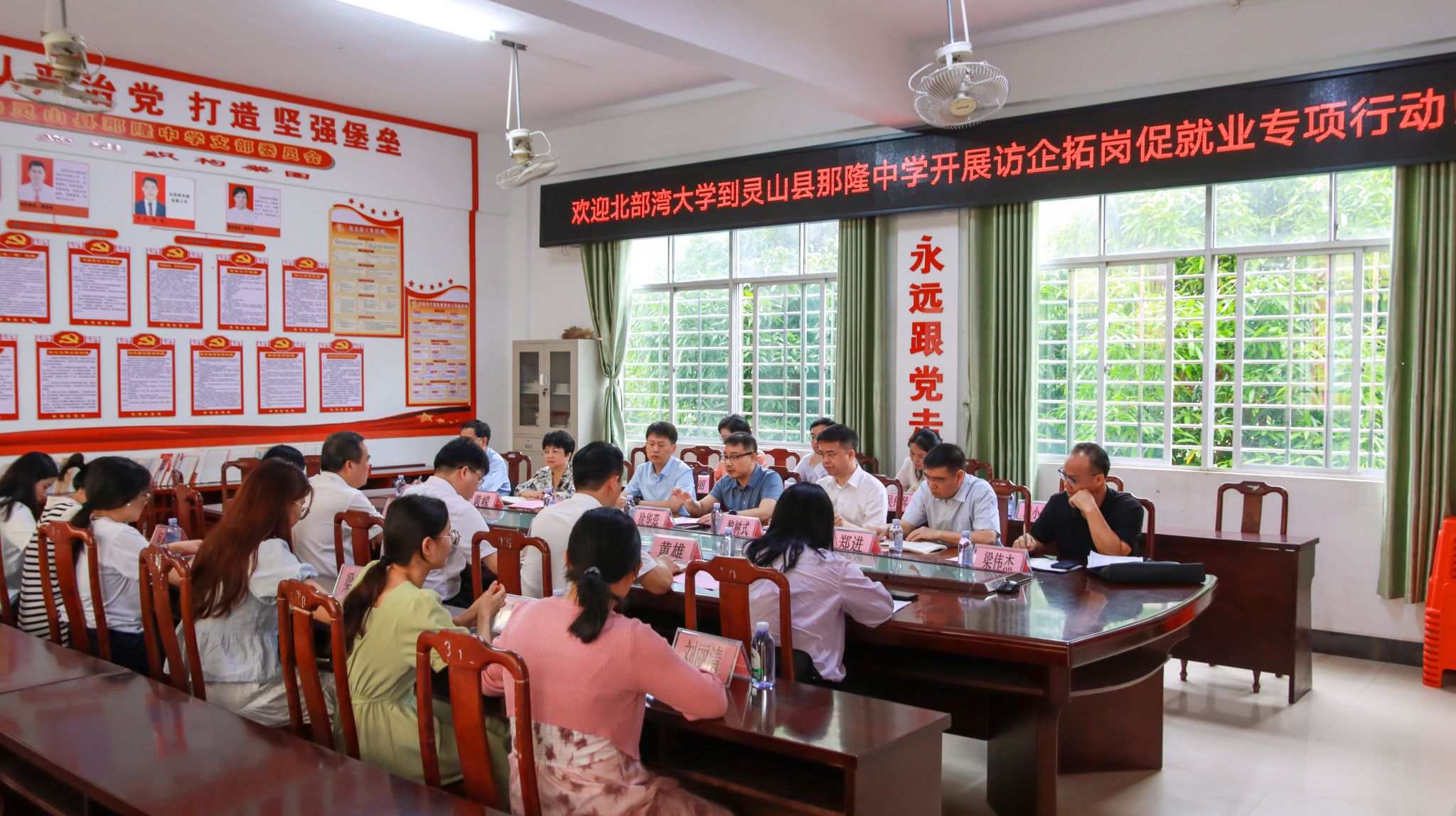 5月7日,校党委书记徐华蕊率队深入灵山县教育系统进行访企拓岗促就业专项走访调研。徐华蕊一行先后走访了灵山县那隆中学、那隆中心校、天山中学、正久实验中学和灵山中学五所学校,并分别看望了在校工作的校友。灵山县委常委、常务副县长陆汉川,灵山县委常务、县委组织部部长赖华平,灵山县教育局局长邓云峰等陪同并参加座谈。在走访调研中,灵山县领导、教育局和各学校负责人分别介绍了灵山县教育系统概况和各学校概况、人才需求以及湾大毕业生在校工作情况,...