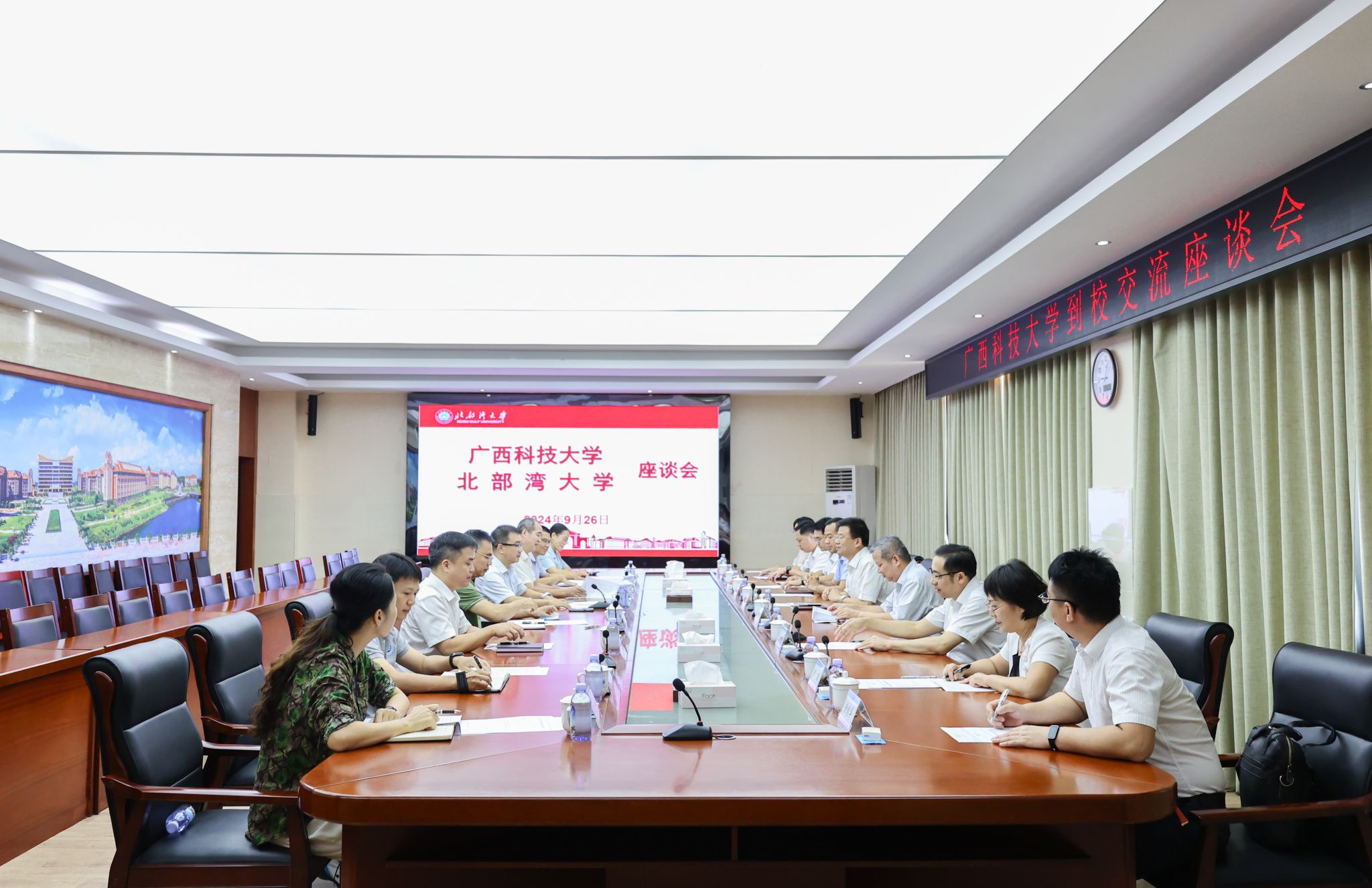 9月25日,桂沪经济发展(上海)有限公司董事长姚若军一行到校调研交流。校党委常委、副校长闫松银热情接待并主持座谈会。姚若军介绍了公司的基本情况,并指出公司以“拥抱长三角,引领新未来”为中心,近年来在招商引资、产业投资、技术创新、聚才引智等方面逐步深入发展。他对学校的办学成效表示赞许,希望双方加强校企产业合作,建立科研合作机制,实现合作发展。闫松银介绍了学校的办学特色、科研成果等基本情况。他表示,北部湾大学是一所海洋性办学特色鲜明的大学,...