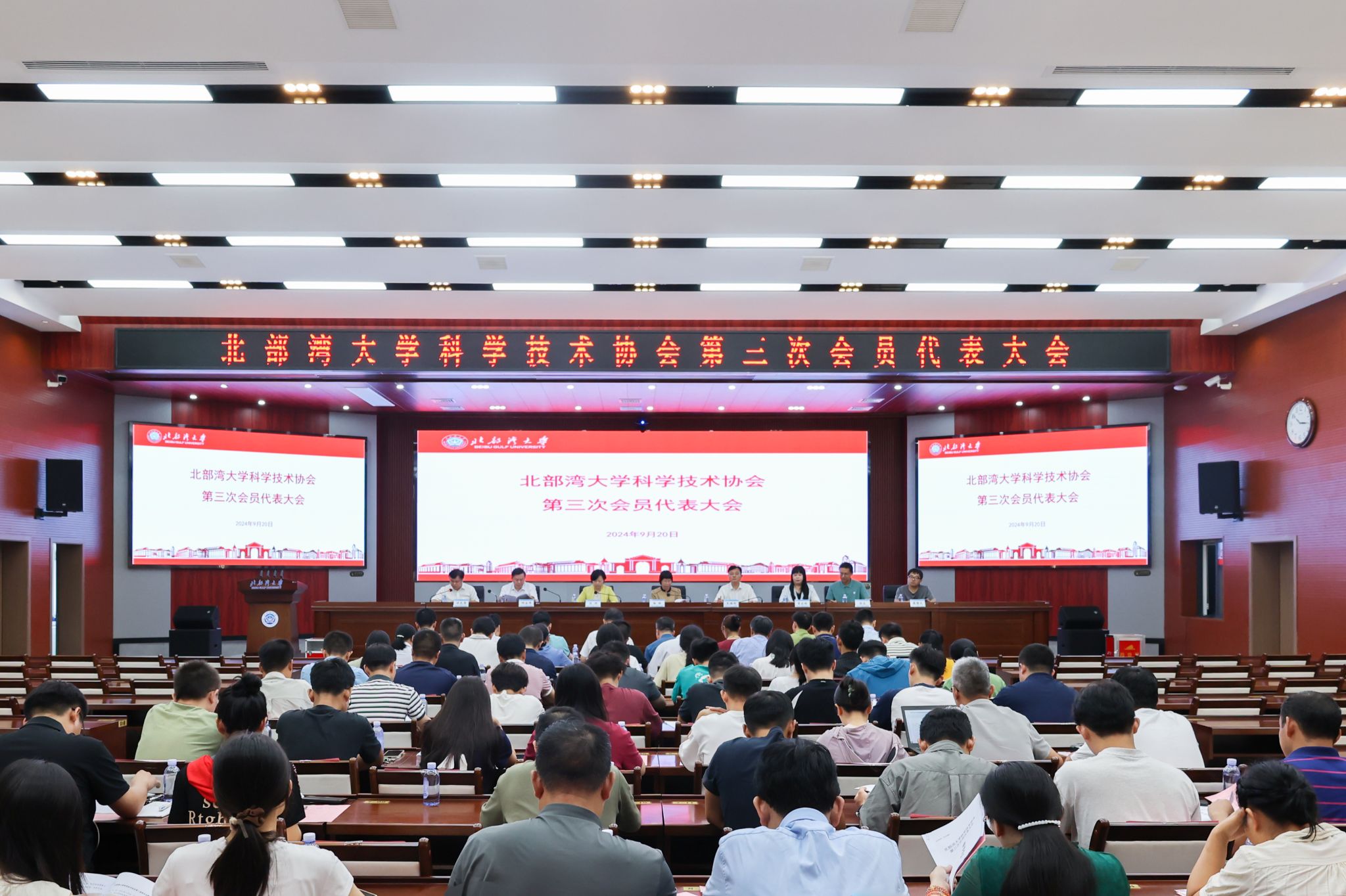 9月20日,我校科协第三次会员代表大会在办公楼一楼报告厅召开。自治区科协党组成员、副主席王鸿鹄,校党委常委、副校长陆衡、陈丹出席会议。自治区科协学会部(联络部)部长曾永林,钦州市科协党组书记、主席何立伟,广西大学科协、广西自贸区见炬科技有限公司科协代表受邀参会。王鸿鹄指出,北部湾大学科协先后5次被自治区科协评为“AAA级优秀科技工作调查站点”,其从组织建立到作用发挥,依托科技人才资源优势,通过“学术、科普、...