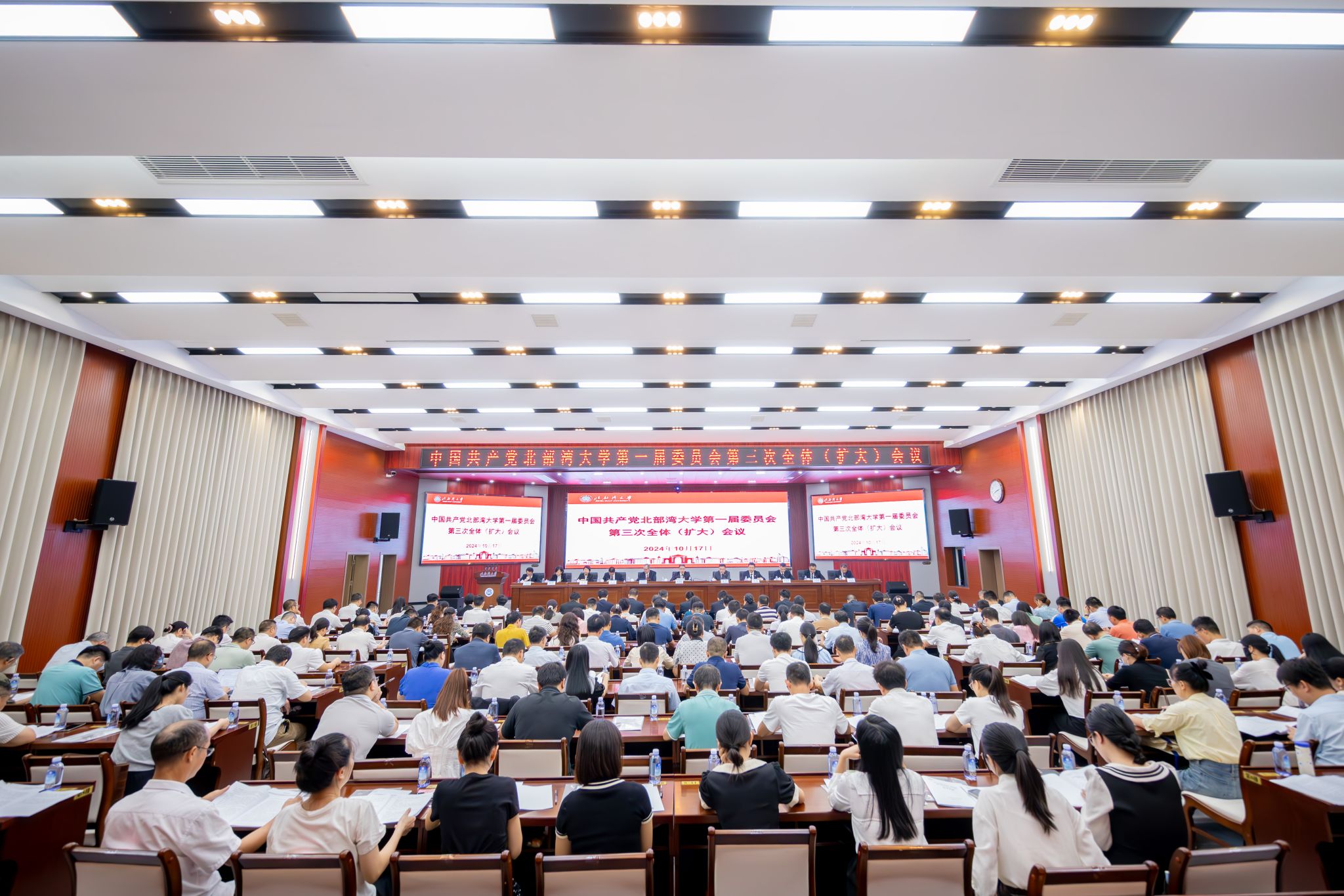 10月17日,中共北部湾大学第一届委员会第三次全体(扩大)会议在办公楼一楼报告厅召开。全体党委委员出席会议。非党员校领导,校纪委委员,全体中层干部和党支部书记列席会议。全会由学校党委常委会主持,听取、讨论和通过了校党委书记徐华蕊受校党委常委会委托所作的工作报告,审议通过了学校《关于进一步全面深化人才培养体制机制改革 推动学校高质量发展的意见》。校党委副书记、校长苗剑就《意见(送审稿)》向全会作了说明。全会充分肯定学校党委一届二次全会以来学校党委常委会的工作。...