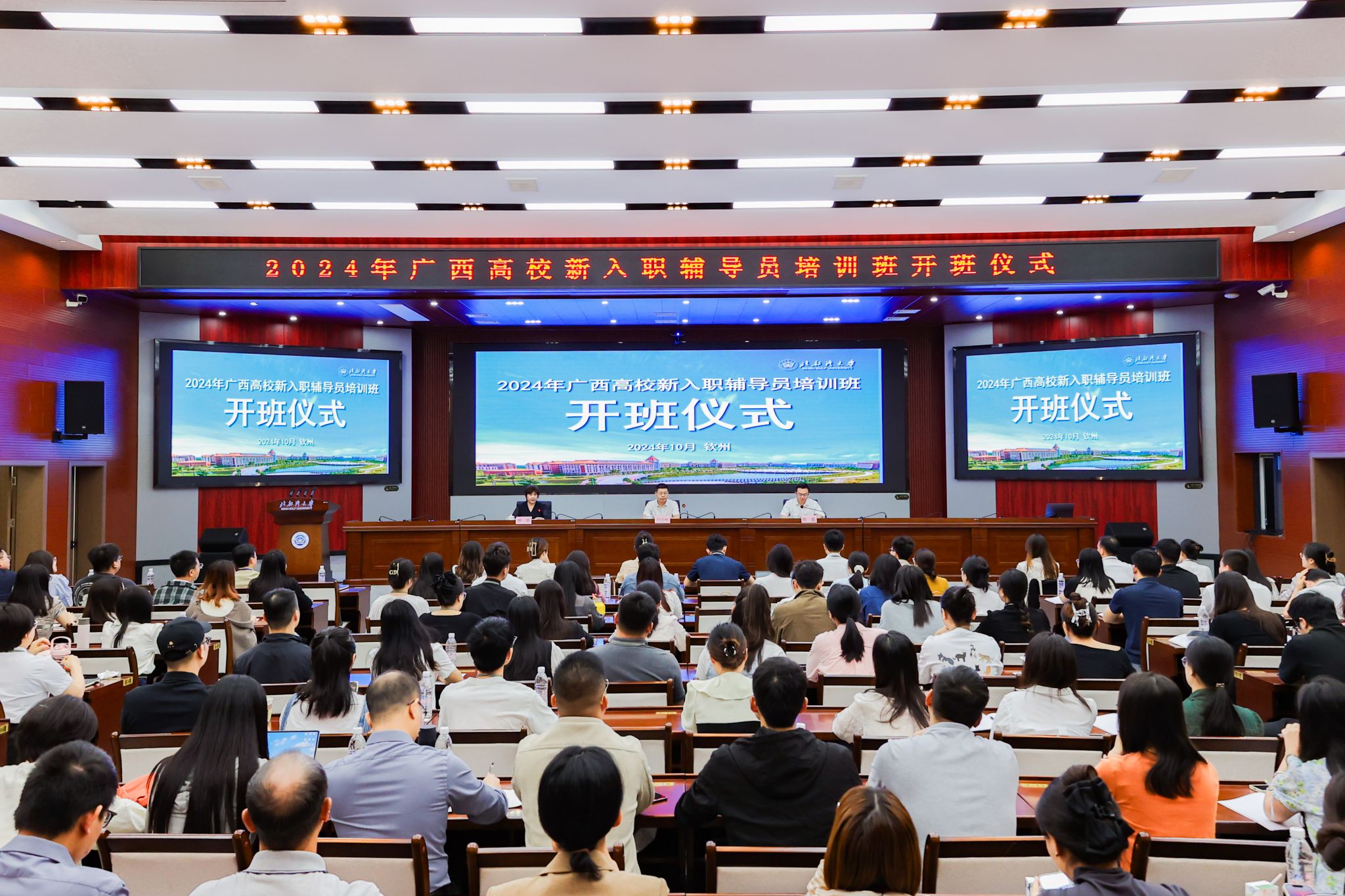 10月24日上午,2024年广西高校新入职辅导员培训班在学校办公楼一楼报告厅开班。广西民族大学党委副书记邓国彬、我校党委副书记陈磊出席开班仪式。来自全区高校的85名辅导员参加培训。开班仪式上,邓国彬希望参训学员在培训中学有所悟,学有所获,强化政治意识和责任担当,明确职责定位,提升专业素养,锻造会发现的眼、会倾听的耳、会思考的脑、会暖人的心,努力成为学生成长成才的人生导师和健康生活的知心朋友。陈磊代表学校对学员们的到来表示热烈欢迎,...