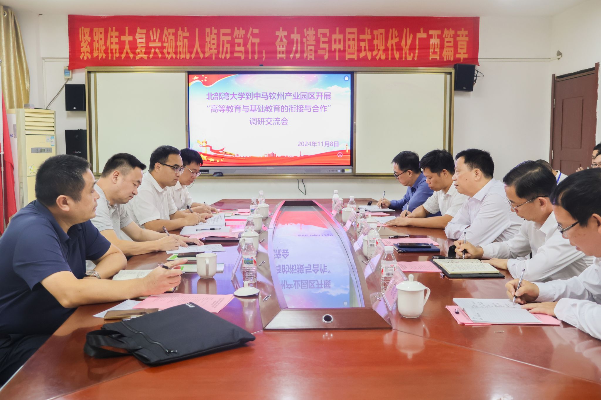11月8日,校党委副书记、校长苗剑率队赴中马钦州产业园区开展“高等教育与基础教育的衔接与合作”调研交流活动,校党委常委、副校长马秀明和教育学院相关负责人参加调研。中马钦州产业园区管委会二级巡视员黄善荣,中马钦州产业园区协调指导局和钦州港区中学相关负责人热情接待并举行座谈。苗剑介绍了学校在学科建设、人才培养、科学研究等方面的优势和特色,强调师范教育是我校的底色。他表示,高等教育与基础教育是相互衔接、相互促进的,...