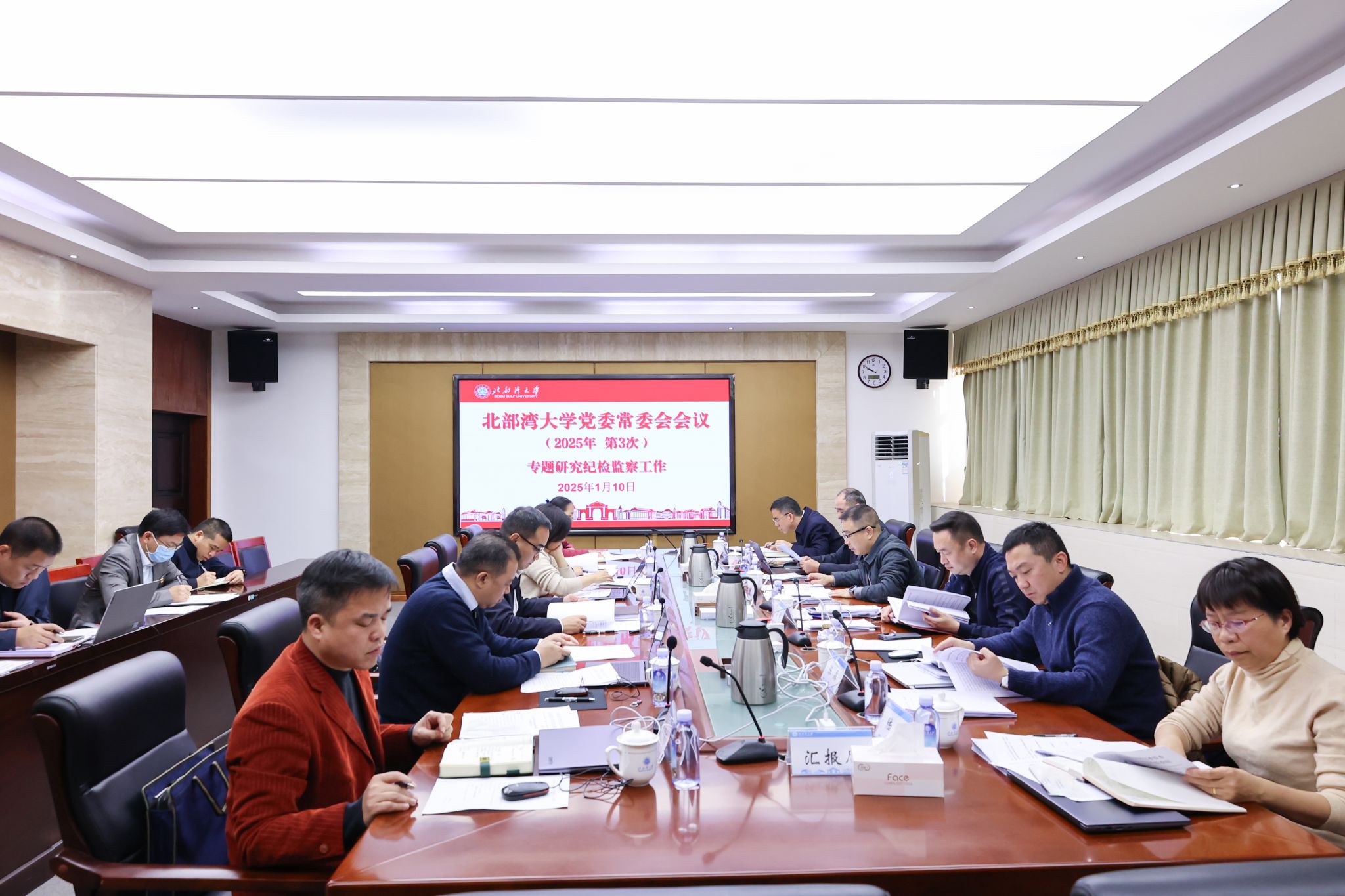 1月6日,学校在办公楼327会议室召开党委常委会,学习习近平总书记二〇二五年新年贺词。校党委书记徐华蕊主持会议并领学。相关职能部门负责人列席会议。会议指出,要深入学习贯彻习近平总书记新年贺词精神,汲取奋进力量,当好高质量发展“主角”,锚定建设海洋特色鲜明的高水平应用型大学的目标,强化“海洋性、应用型、国际化”办学特色,绘就学校高质量发展新画卷,解放思想、创新求变,向海图强、开放发展,为奋力谱写中国式现代化广西篇章贡献湾大力量。...