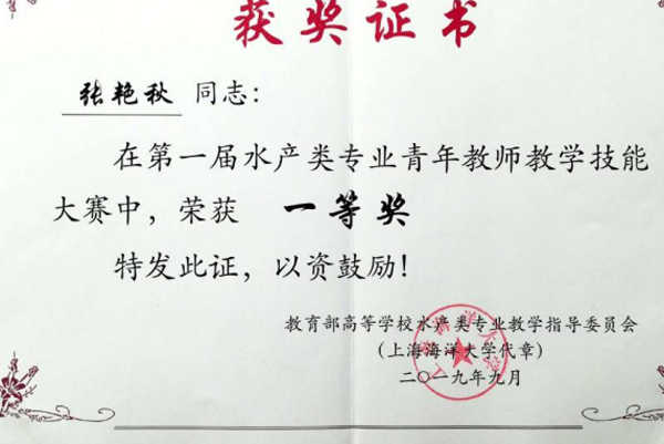 9月20至22日,第一届水产类专业青年教师教学技能大赛决赛在上海海洋大学举行。我校海洋学院教师张艳秋在比赛中斩获一等奖。本次比赛由教育部高等学校水产类专业教学指导委员会主办,上海海洋大学承办。自5月6日开赛以来,共有全国38所本科高校的60余名水产类专业教师报名参赛,我校海洋学院以本次大赛为契机,组织团队积极开展教学研讨和备赛工作。张艳秋老师在比赛中发挥稳定,不仅出色完成15分钟的课堂教学,而且紧密结合课...