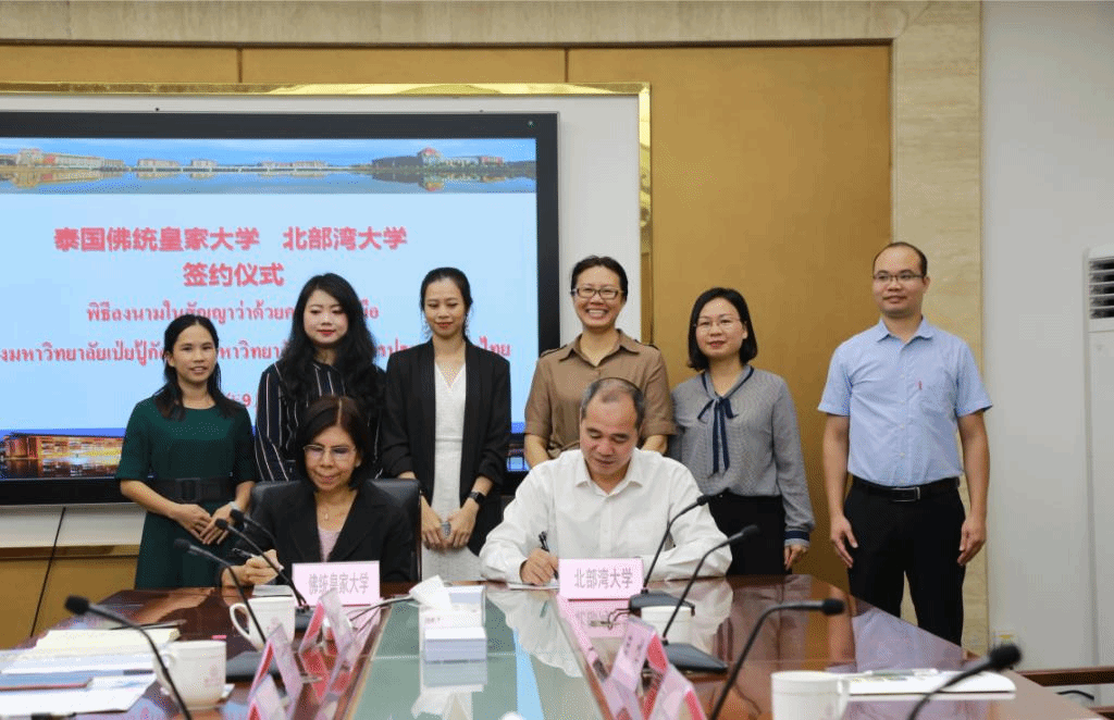 泰国佛统皇家大学语言培训中心维莱乐·齐琳主任一行3人9月18-22日应邀参加2019中国—东盟职业教育联展暨论坛,并于21日上午到访我校,双方在办公楼327会议室洽谈合作并签署了合作协议。学校副校长唐高华对维莱乐·齐琳主任一行来访表示了热烈的欢迎,并表示2006年至今两校建交已有13年,双方合作关系良好,每年都互派学生交流学习。唐高华副校长介绍了今年该校留学生在我校学习生活的基本情况,并表示,这届佛统大学的同学汉语...