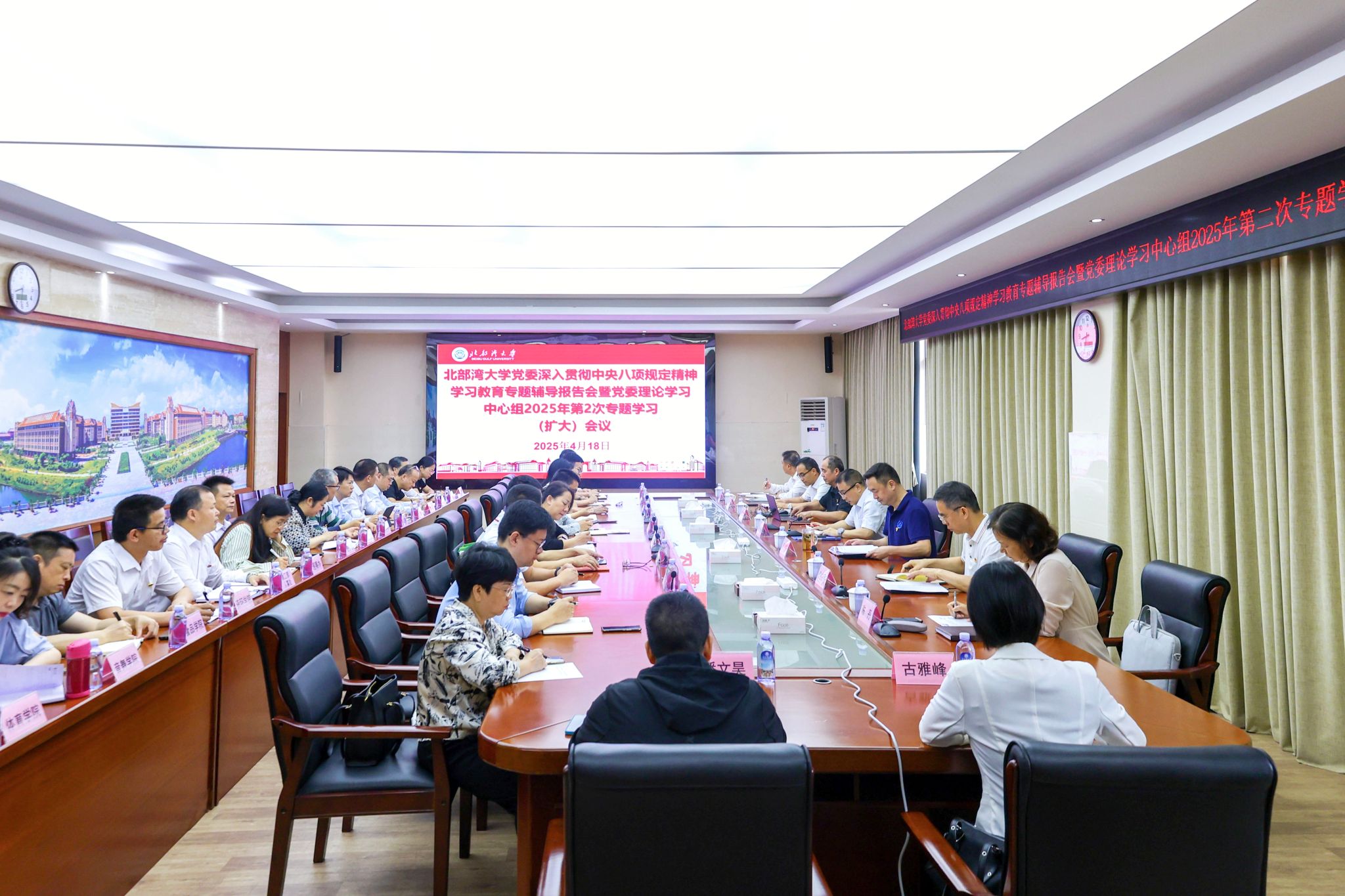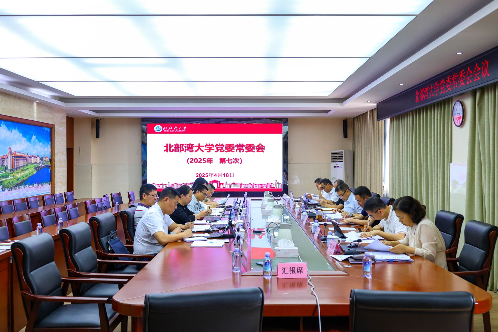 4月18日,学校在办公楼523会议室召开党委常委会,传达学习习近平总书记近期重要讲话、重要文章精神,以及中央、自治区有关会议、文件精神。校党委书记徐华蕊主持会议。相关职能部门负责人列席会议。会议强调,要深入学习贯彻习近平总书记在中央周边工作会上的重要讲话精神,以及访问马来西亚、越南、柬埔寨期间的重要讲话、重要文章精神,充分发挥学校区位优势,立足广西、面向东盟,依托中马“两国双园”等平台,推动与东盟高校、企业间在合作办学、...