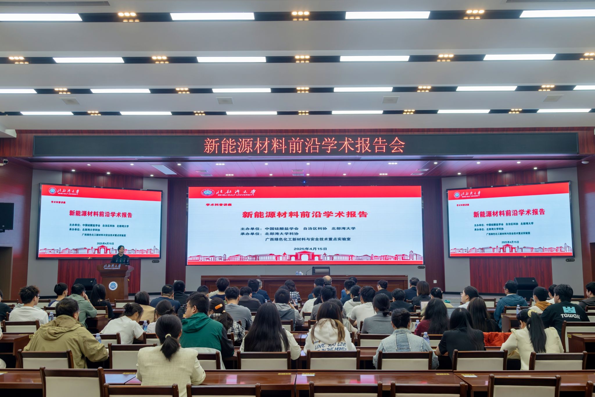 4月15日,“科创中国”储能材料科技服务团暨“全国学会入桂行”走进北部湾大学,开展学术交流活动。中国硅酸盐学会副理事长、武汉理工大学材料学科首席教授陈文,学校党委常委、副校长陈丹出席活动。中国硅酸盐学会副理事长、武汉理工大学材料学科首席教授陈文作了题为“电致变色材料研究现状与展望”的学术报告。中国硅酸盐学会固态离子学分会理事长、中国科学院上海硅酸盐研究所研究员、“科创中国”储能材料科技服务团首席科学家温兆银作了题为“...