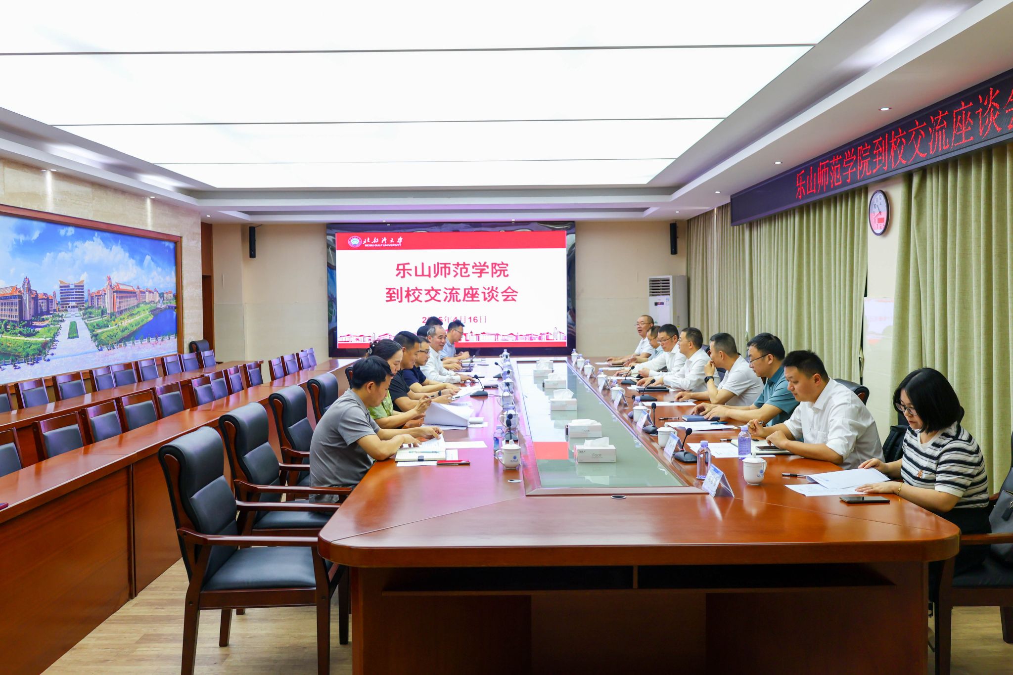 4月16日,乐山师范学院党委书记刘进,校党委副书记、工会主席陈立志率队到我校调研交流。校党委书记徐华蕊、党委副书记唐高华热情接待刘进一行。唐高华从历史沿革、办学特色、师生规模、学科建设等方面介绍了学校的基本情况。刘进对湾大近年来在人才培养、学科建设、科学研究等方面取得的成绩表示赞赏,并介绍了乐山师范学院的办学历程、发展规划、学科建设、办学特色等方面的情况。他期待,今后两校在学科专业布局、硕士点建设、研究生教育、...