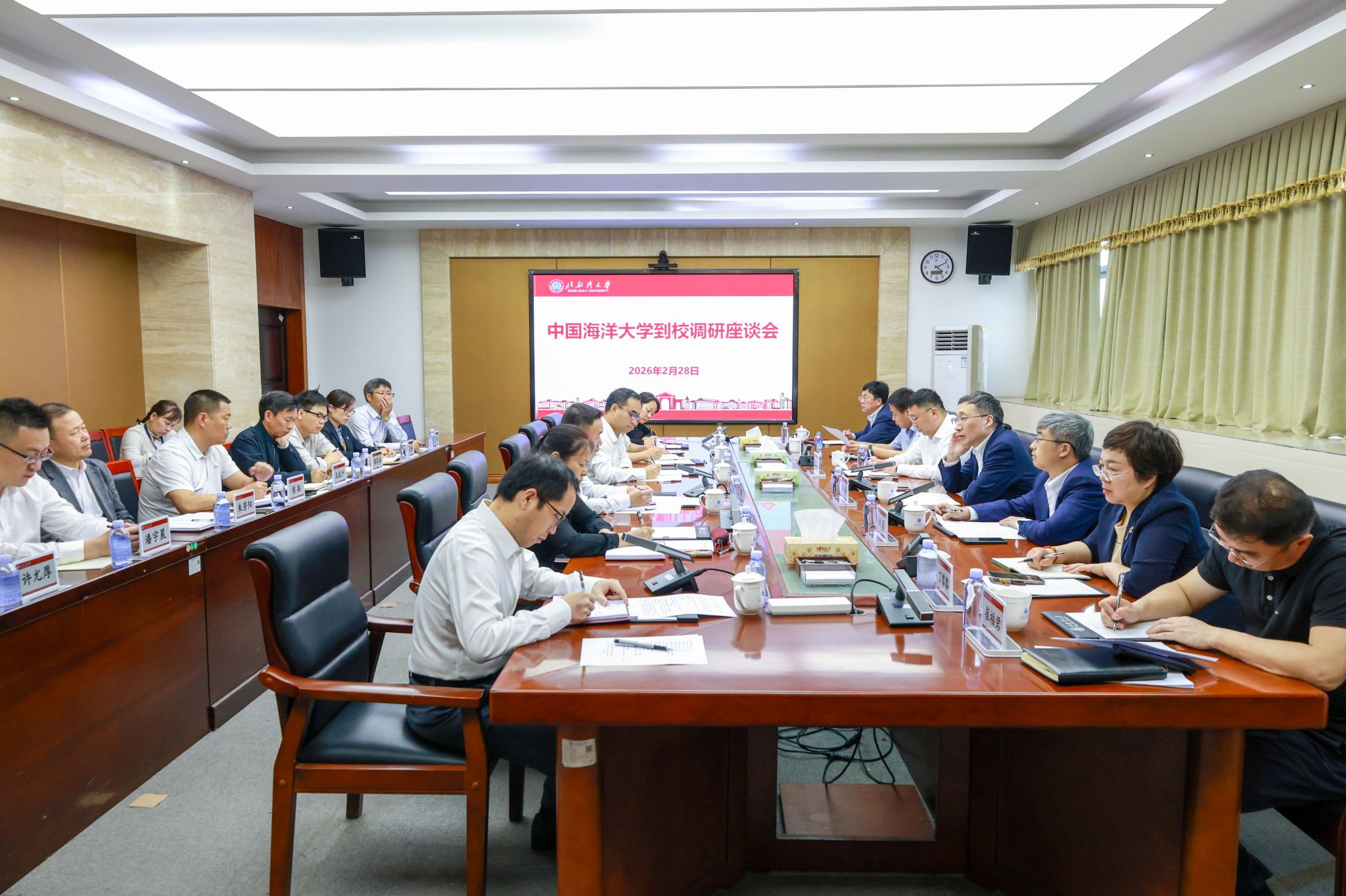 2月28日,中国海洋大学党委副书记、校长张峻峰,党委常委、副校长刘勇一行到访我校。校党委书记、校长苗剑等全体在家校领导热情接待,双方在办公楼327会议室举行交流座谈会。苗剑热烈欢迎张峻峰校长率队来访,并对中国海洋大学长期以来给予我校的支持帮助表示诚挚感谢。他指出,中国海洋大学是我国海洋高等教育的标杆与旗帜,在特色涉海学科体系构建、海洋拔尖创新人才培养、服务国家海洋重大战略等方面成果斐然,为国家海洋事业发展贡献了宝贵的“...