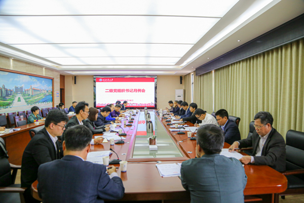 12月18日,我校在523会议室召开二层机构党组织书记工作例会。学校党委书记赵君出席会议,党委职能部门负责人及二层机构党组织书记参加会议。会议由党委常委、统战部部长、党校办主任任才茂主持。会上,党委常委、组织部部长陆衡通报了领导班子的问题差距征求意见情况和开展专题民主生活会作工作的情况,并布置了近期工作。党委常委、宣传部部长马秀明传达了上级关于意识形态工作的会议精神,并布置了师德师风、课程思政、留学...