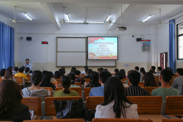 4月29日下午,我校首场“党史故事进班级”宣讲活动在13号教学楼211教室举行。自治区优秀共产党员朱芳阳教授作为主讲嘉宾与各学院辅导员代表及班级学生代表共七十余人分享自身成长经历。朱芳阳教授是经济管理学院党委副书记、院长。他回顾了自己由船员到大学教师的成长经历,讲述了从一名青年党员到自治区优秀共产党员的奋斗历程。他鼓励同学们不忘初心、不忘党恩,把自己的人生融入到为人民服务、为社会发展中去。他鼓励青年一...