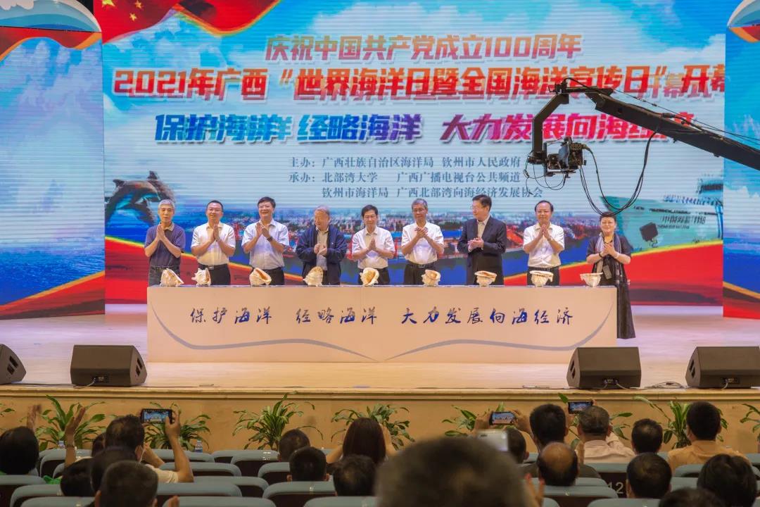6月8日,北部湾大学礼堂,招展的红旗、帅气的旗语操、利落的匕首操,湾大学子用英姿飒爽的创意跑旗《我爱这蓝色的海洋》拉开了2021年广西“世界海洋日暨全国海洋宣传日”的序幕。自治区海洋局副局长刘斌,钦州市副市长谢立品,中共中央对外联络部原常务副部长、原全国人大外事委员会副主任委员马文普,中国西部研究与发展促进会理事长、全国工商联原副主席程路,国家高端智库资深学者、中国法学交流基金会副秘书长、国务院参事...