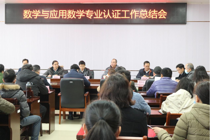 12月30日下午,学校在1号教学楼B栋319会议室召开数学与应用数学专业认证工作总结会。学校党委书记韩峻峰,校党委常委、副校长唐高华出席会议。理学院院长梁好翠在会上作数学与应用数学专业认证工作总结报告。教务处处长钟其鹏就整改工作和2022年师范类专业认证工作作了统一部署。唐高华指出,做好专业认证整改工作,一要形成高水平教师队伍,学科团队、教学团队要齐头并进;二要以课堂为改革核心,提高课堂教学质量;三要完善教...