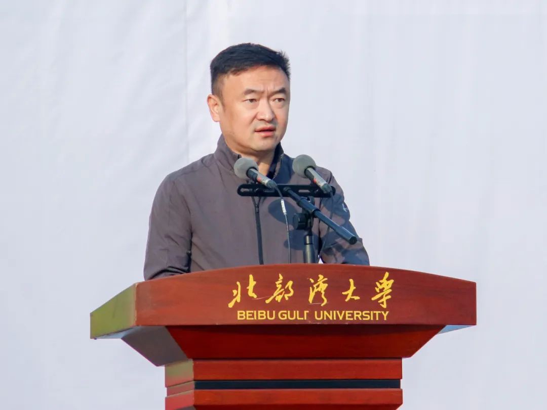 11月24日,西区田径场阳光明媚,热闹非凡。在铿锵有力的运动员进行曲中,北部湾大学第三届体育节、第十四届田径运动会暨第一届教职工趣味运动会开幕式正式拉开帷幕。全体在家校领导及二级学院领导在主席台上就坐。学校党委常委、副校长梁智主持开幕式。开幕式上,来自不同院系和职能部门的26支方队各出新意、各展风采。国旗、校旗、会徽方队气宇轩昂,步履铿锵,彰显着新时代青年的青春与活力;鲜花方队青春昂扬,手举花束,在校歌旋律中摆出“...