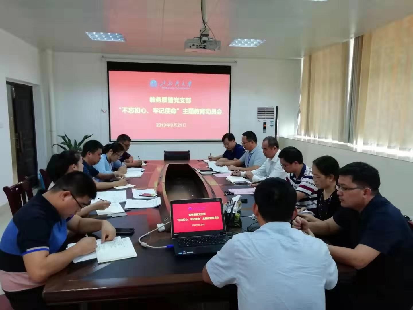 9月21日下午,教务质管党支部在行政楼201会议室召开支部全体党员参加的“不忘初心、牢记使命”主题教育动员会,学校主题教育巡回指导员姚敏同志出席会议。会议由支部副书记黄孙庆同志主持。会上,支部书记钟其鹏作“不忘初心、牢记使命”主题教育动员讲话。他要求支部全体党员要深刻认识开展主题教育的重大意义,他指出,要严格按照“守初心、担使命、找差距、抓落实”的总体要求扎实开展主题教育;要完成理论学习有收获、思想...