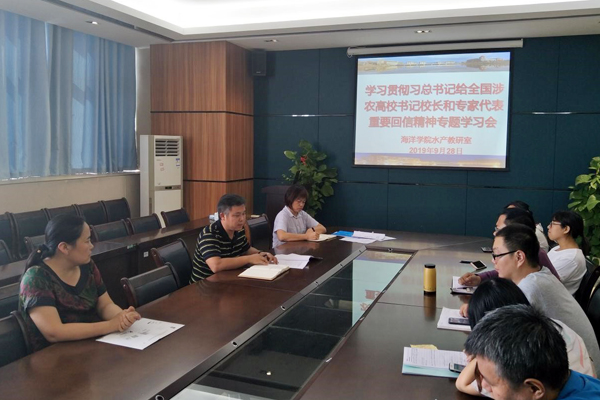 9月28日,海洋学院水产教研室全体教师在7A-229会议室召开了“学习贯彻习近平总书记给全国涉农高校书记校长和专家代表重要回信精神专题学习会”。杨家林主任带领大家学习了“习总书记给全国涉农高校书记校长和专家代表的回信”,以及“安吉共识-中国新农科建设宣言”,并围绕“新时代新使命要求高等农林教育必须创新发展”、“新农业新乡村新农民新生态建设必须发展新农科”、“扎根中国大地掀起高等农林教育的质量革命”和“为世界高等农林教育贡献中国方案”...