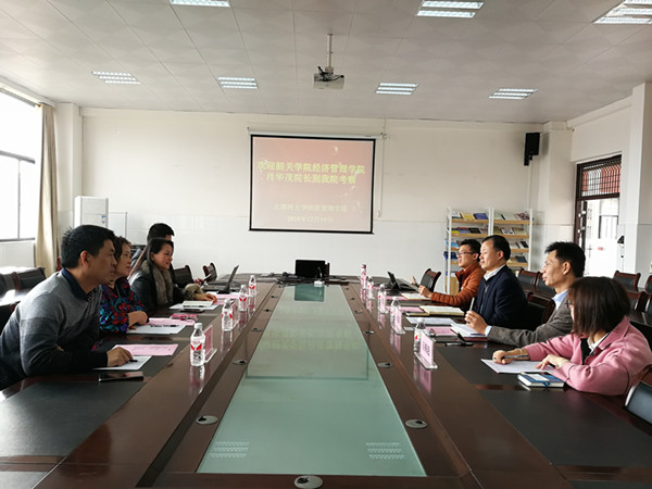 12月19日,韶关学院经济管理学院肖华茂院长、霍智萍教授、彭剑副教授、戴俊威一行四人到我院交流。我院朱芳阳院长出席并主持交流会,会议主要就硕士点建设、人才引进、实验室建设、学生工作和学生特色培养等工作经验进行交流。会上,朱院长详细地介绍了我院的基本情况,硕士点申报工作、实验室建设等工作的经验做法,双方就硕士点申报和实验室建设工作进行了深入交流。覃志武副书记就我院学生工作特色进行介绍和交流,双方针对...