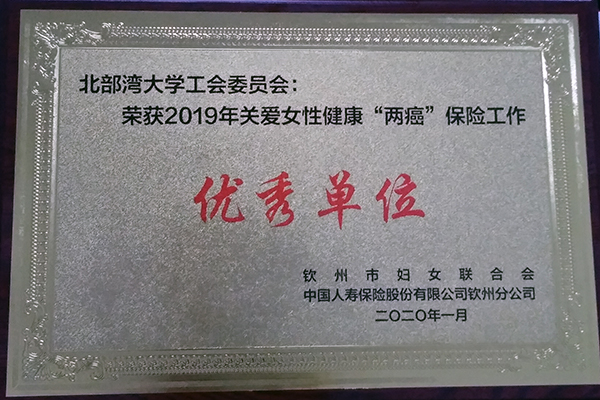 1月2日,从《关于表扬2019 年钦州市健康脱贫——关爱女性健康“两癌”保险工作优秀单位的通报》(钦妇通[2020]4号)获悉,2019 年以来,在钦州市妇联、钦州市总工会、钦州市卫生健康委的指导下,北部湾大学工会委员会持续深入开展我校关爱女性健康“两癌”保险工作,取得了显著成效。为表扬先进,经钦州市妇联研究决定,授予北部湾大学工会委员会2019年关爱女性健康“两癌”保险工作优秀单位。校工会荣获2019年关爱女性健康“两...