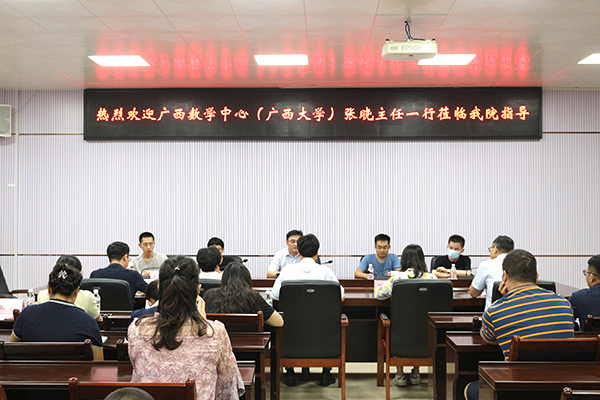 8月3日下午,广西数学研究中心主任张晓一行10人到理学院调研,与理学院党政班子和数学专业教师座谈交流。理学院院长梁好翠从数学学科建设、专业建设与人才培养情况等方面介绍了学院情况,表示希望广西数学研究中心能在师资队伍建设、国家级一流本科专业建设等方面给予学院大力支持。张晓主任也介绍了广西数学研究中心的基本情况、研究方向等,表示期待与理学院开展深层次的学术交流与合作研究。与会双方就数学与应用数学专业人...