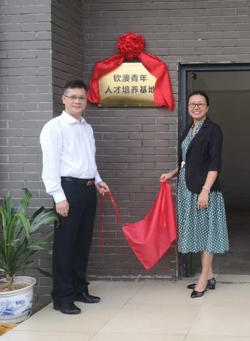 11月17日上午,钦澳青年人才培养基地在我校国际教育与外国语学院揭牌成立,该基地由北部湾大学和澳门广西商会共建。钦州市统战部副部长张轻,校党委常委、党校办主任、统战部部长任才茂,国际教育与外国语学院党委书记黎树式,院长冯丽出席仪式。国际教育与外国语学院副院长蔡成龙主持。蔡成龙介绍了钦澳青年人才培养基地筹建过程及学校拟与澳门高校、公司、企业开展的合作内容。张轻和冯丽共同为钦澳青年人才培养基地揭牌。相...