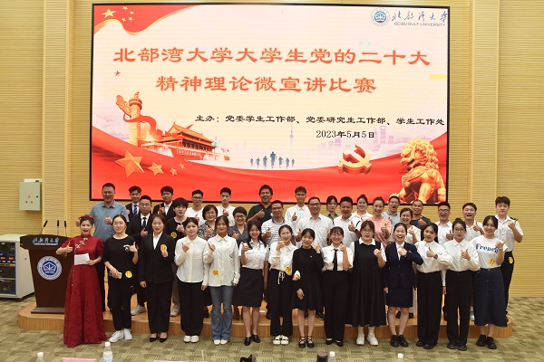 5月5日晚,由学校党委学生工作部、党委研究生工作部、学生工作处主办的北部湾大学大学生党的二十大精神理论微宣讲比赛在12号教学楼210报告厅举行。来自各二级学院的28名选手参加了比赛。比赛现场,选手们热情饱满、精神焕发,紧紧围绕党的二十大精神的核心要义、精神实质、丰富内涵和实践要求,谈体会、话心得,用小切口讲述大道理,用小故事抒发大情怀,在舞台上充分展现了新时代青年昂扬向上的奋斗姿态。选手们声情并茂的宣...