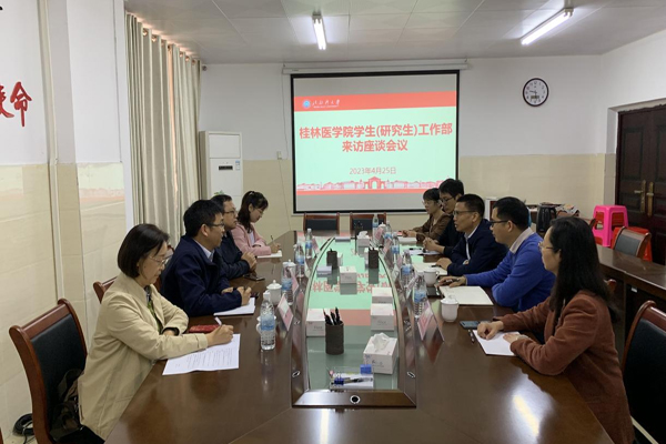 4月25日上午,桂林医学院学生(研究生)工作部部长龙亮一行到我校考察交流。学校学生(研究生)工作部部长裴以明热情接待了龙亮一行并召开座谈会。学工部(处)副部(处)长董海亮、心理健康教育中心主任程族桁、心理健康教育中心专职教师参加会议。裴以明对龙亮一行的来访表示热烈欢迎,希望两校心理健康中心加强交流合作,通过相互学习经验与做法,拓展彼此的工作思路,进一步推动两校心理健康教育工作的深入开展。程族桁从中...