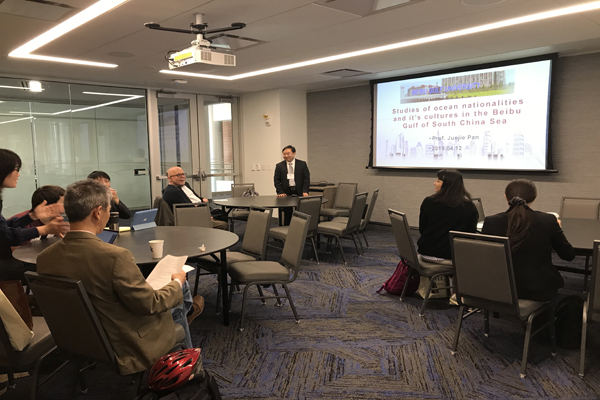 4月8日至14日,我校北部湾海洋文化研究中心潘俊杰教授受邀赴美国肯塔基大学参加学术研讨。学术交流访问期间,潘俊杰教授参加了“肯塔基大学语言、文学与文化”国际学术会议并作题为《中国南海北部湾地区的少数民族及其文化研究》的研究报告,引起与会学者的强烈反响和一致好评。作为评委参加肯塔基大学孔子学院中文演讲比赛及“古典与现代语言、文学与文化系” 经典精读学年颁奖典礼等活动。此次赴美学术交流活动,是“北部湾...