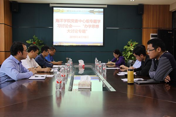 4月15日下午,海洋学院党委理论中心组在7A-229会议室开“办学思想大讨论”专题学习讨论会,党委委员参加了学习讨论。学院党委书记何光耀主持会议。会上,党委委员逐一畅谈学习体会。党委副书记曾栋梁从人才引进、应用技术转型、校园文化建设、绩效激励等方面提出了建议;廖日权老师从顶层设计、实验室建设等方面发表了意见;方怀义老师从水产养殖专业人才培养畅谈了想法;李伟峰老师从教育教学、立德树人等方面谈了感想;王鹏良...