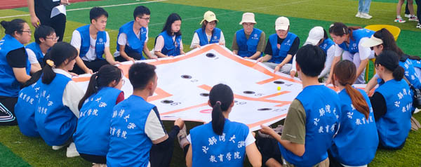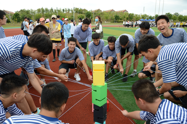 当天下午,同学们热情高昂地到达东区田径场,面对他们从未接触过的数字漫游、极速旋转、合力建塔、珠行万里、抢球大作战、搭桥过河、九宫格、合力举球等8个集体项目,“一开始挺担心的,大家都不认识,这么多集体项目,很害怕大家彼此之间因为不是很熟悉而很难完成。”人文学院汉教本212班的陶小凤同学说道。