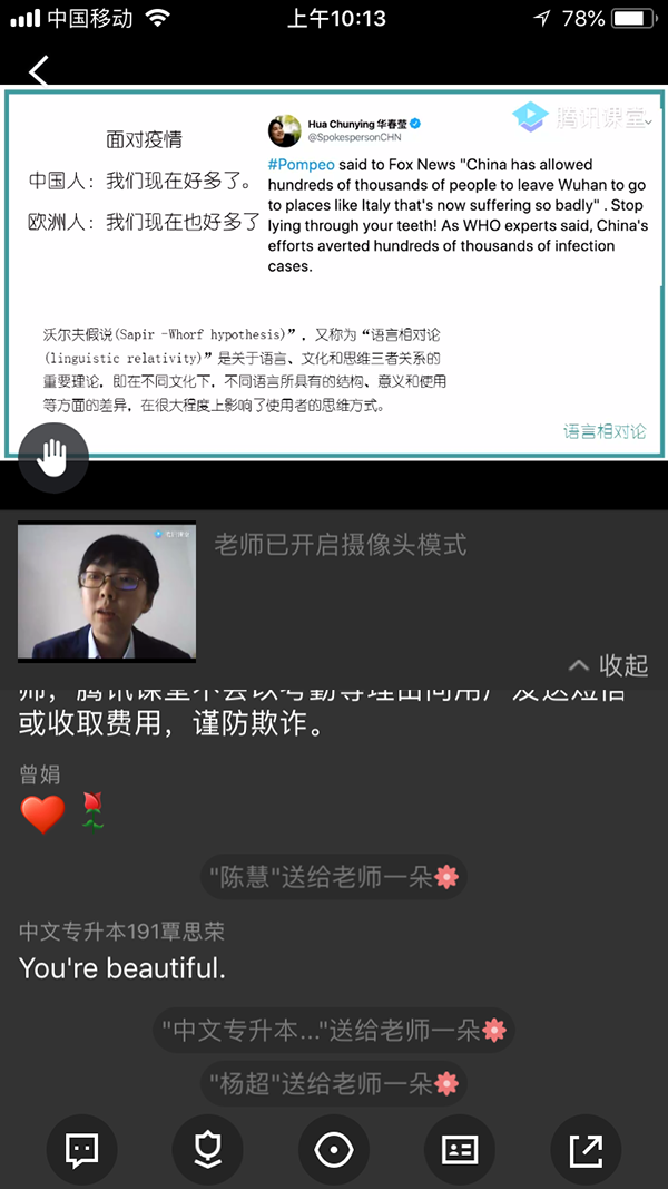 督导专家参与在线课堂(图为:黄宇鸿教授)