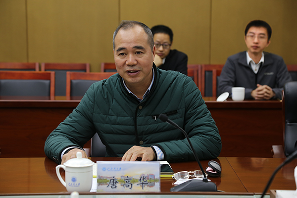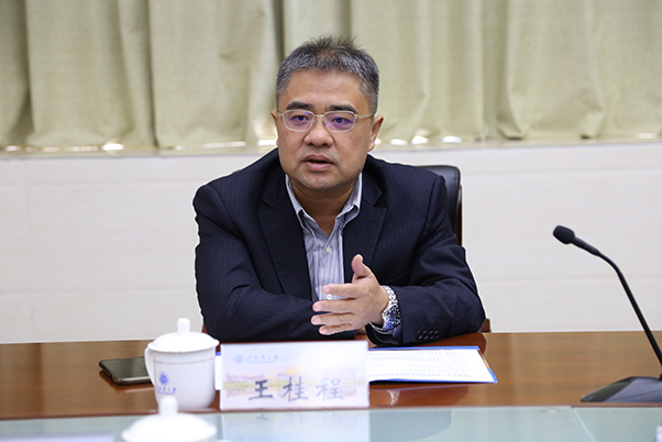 王桂程总经理介绍了公司的基本情况、前景规划和发展理念,并对我校近年来的办学成绩给予肯定,表示未来将进一步加大与湾大的合作,创新校企合作机制,面向科技创新和国家重大战略需求在资源共享、人才合作、成果转化等方面加强协同协作。