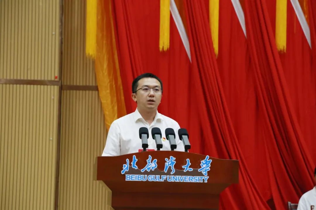 校党委副书记陈磊致大会闭幕词。他指出,大会的胜利召开,吹响了新征程的号角。认真学习、贯彻落实北部湾大学第一次党代会精神,是当前工作中的首要任务。全校各级党组织要迅速组织广大党员干部和师生员工学习贯彻大会精神,把思想和认识统一到大会的决策部署上来。全体湾大人要更加紧密地团结在以习近平同志为核心的党中央周围,坚持以习近平新时代中国特色社会主义思想为指导,不断增强培养适应新时代所需要的高素质人才的使命担当,不断提升学校服务向海经济发展的科技创新、人才保障的能力和水平;进一步统一思想、统一认识、统一行动,解放思想、深化改革,踔厉奋发、拼搏奉献,为将我校早日建成海洋特色鲜明的具有一定国际影响力的高水平应用型大学而努力奋斗,为建设新时代壮美广西、实现中华民族伟大复兴的中国梦而努力奋斗。