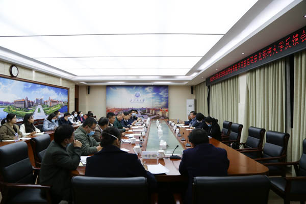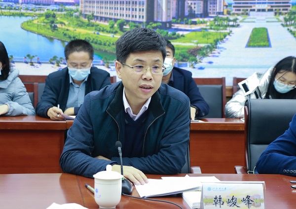 在专题汇报会上,韩峻峰对各位专家到学校来巡察指导表示热烈的欢迎和衷心的感谢。他以《学习贯彻党的二十大精神 扎实推进思想政治理论课建设》为题,从强化组织领导、创新教学方式、深化课程内涵建设、推进党的二十大精神融入思政教学、存在的不足以及下一步改进思路等几个方面向巡察组专家详细汇报了我校思想政治理论课建设工作情况。