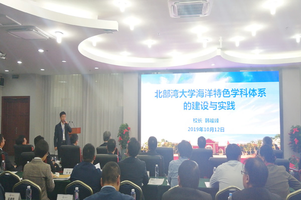 韩峻峰校长做《北部湾大学海洋特色学科体系的建设与实践》主旨发言